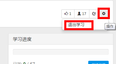 点击退出学习后,课程就删除啦,以后重新想要学习,可以重新选择购买!